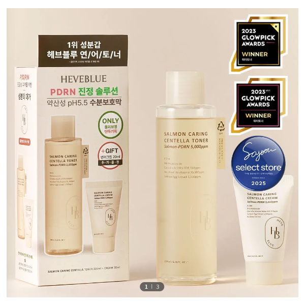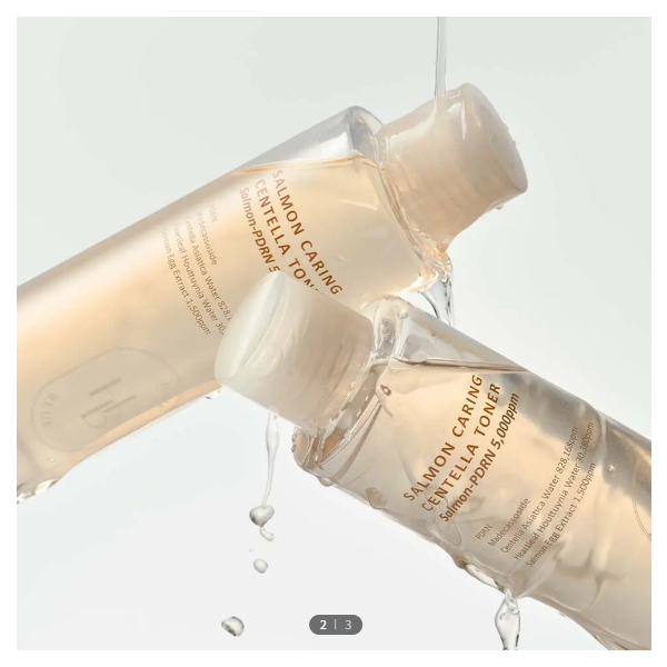 | 화장품법에 따라 기재해야 하는 모든 성분 | 살몬 케어링 센텔라 토너 병풀잎수(828,168ppm), 정제수, 부틸렌글라이콜, 약모밀수(30,380ppm), 프로판다이올, 글리세린, 1,2-헥산다이올, 연어알추출물(1,500ppm), 소듐디엔에이, 마데카소사이드, 쇠비름추출물, 판테놀, 아보카도열매추출물, 덱스트린, 카카오추출물, 알란토인, 말토덱스트린, 에틸헥실글리세린, 소듐하이알루로네이트, 다이소듐이디티에이 살몬 케어링 센텔라 크림 병풀잎수(625,219ppm), 부틸렌글라이콜, 글리세린, 카프릴릭/카프릭트라이글리세라이드, 하이드로제네이티드폴리(C6-14올레핀), 정제수, 프로판다이올, 다이프로필렌글라이콜, 펜타에리스리틸테트라에틸헥사노에이트, 1,2-헥산다이올, 연어알추출물(1,500ppm), 소듐디엔에이, 마데카소사이드, 쇠비름추출물, 판테놀, 녹차수, 아보카도열매추출물, 하이드롤라이즈드하이알루로닉애씨드, 하이드롤라이즈드콜라겐, 카카오추출물, 토코페롤, 하이알루로닉애씨드, 해바라기씨오일, 베타인, 아데노신, 말토덱스트린, 트로메타민, 소듐하이알루로네이트, 에틸헥실글리세린, 잔탄검, 덱스트린, 세테아릴올리베이트, 솔비탄올리베이트, 암모늄아크릴로일다이메틸타우레이트/브이피코폴리머, 아크릴레이트/C10-30알킬아크릴레이트크로스폴리머, 사이클로헥사실록세인, 소듐폴리아크릴레이트, 다이소듐이디티에이 |